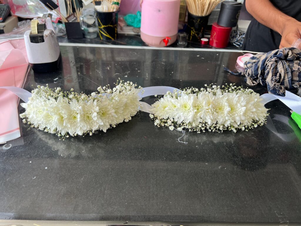 Elegant White Chrysanthemum Floral Gajray with Baby’s Breath