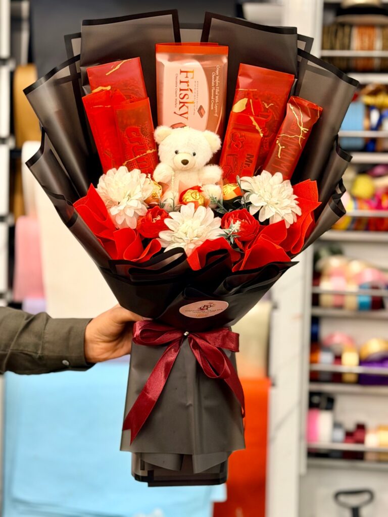 Sweet Red Teddy & Chocolate Fusion Bouquet